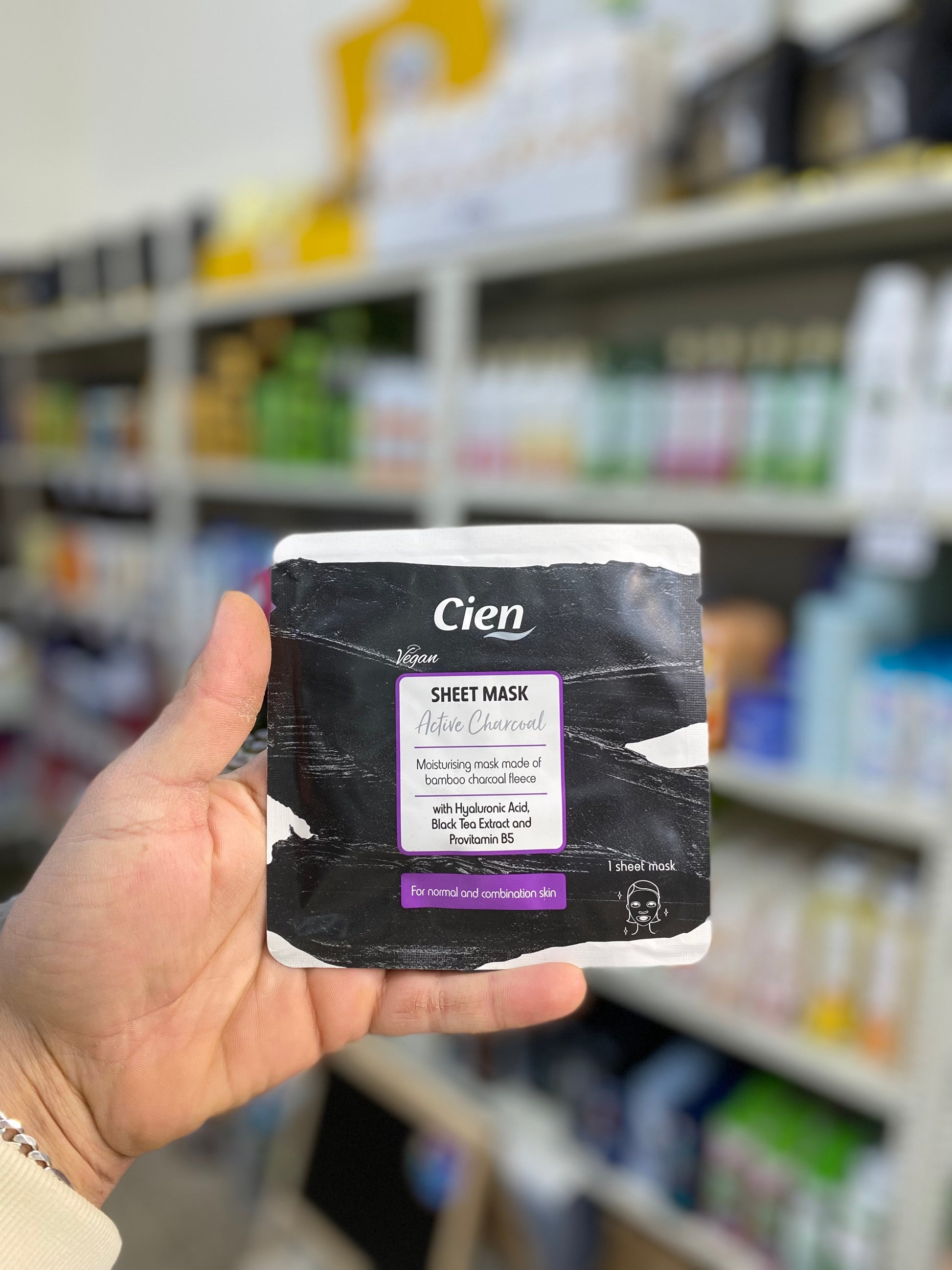 Cien SHEET MASK Active Charcoal with Hyaluronic Acid, Black Tea Extract and Provitamin B5